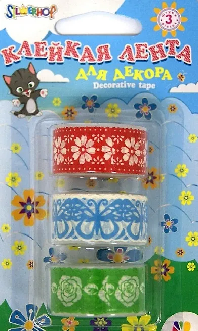 Клейкая лента для декора. Предназначена для оформительских работ, для скрапбукинга, для склеивания бумаги, картона.