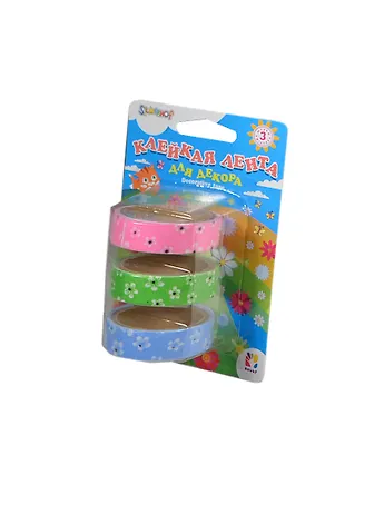Клейкая лента д/декора Hobby тканевая 3шт (цветы салатовые/голубые/розовые) в блистере 481018