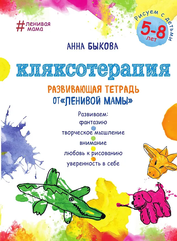 Дорогие родители! Эту развивающую тетрадь разработала педагог, психолог и автор бестселлера «Самостоятельный ребёнок, или как стать "ленивой мамой"», Анна Быкова. Еще в детстве она полюбила одну игру: закапать краской лист бумаги, а потом вертеть его, придумывать, на что это похоже, дорисовывая кляксы до красивой картинки. Таким образом получается замечательная коррекция страха ошибки. Любые «ляпы» можно дорисовать, переделать, использовать для нового рисунка.