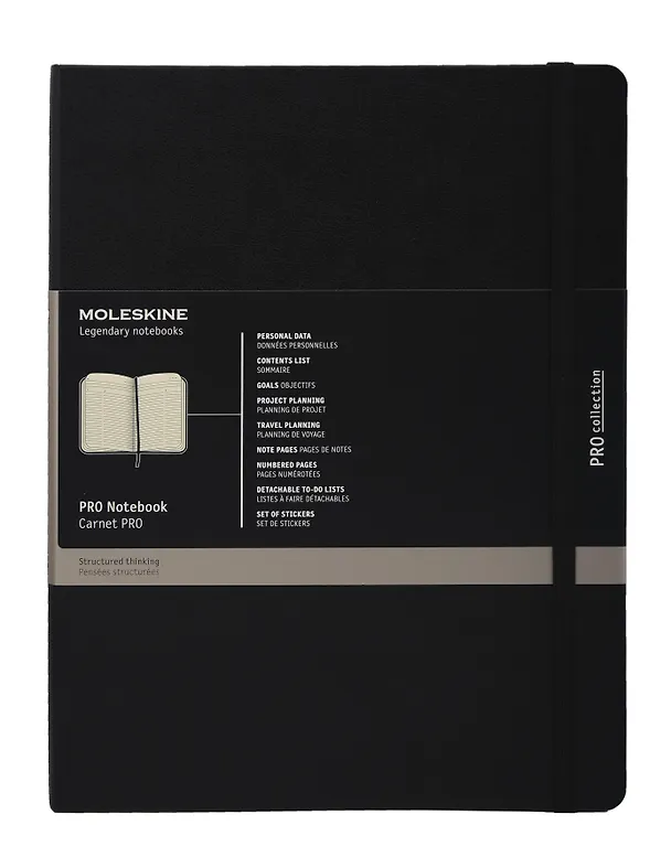 Книга для записей А4 96л лин. "Professional Large" черная, жесткая обложка, резинка, Moleskine