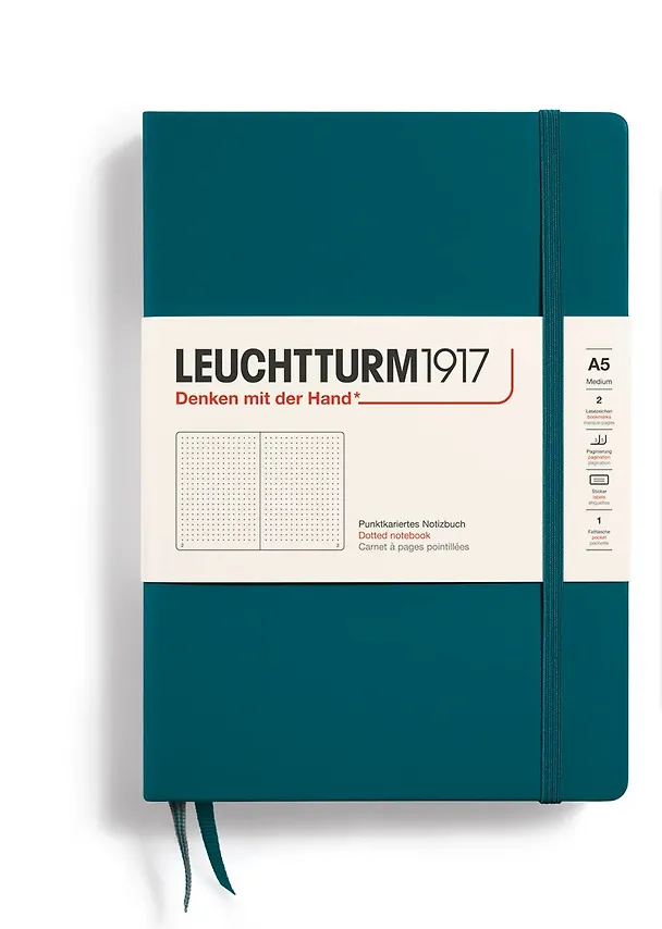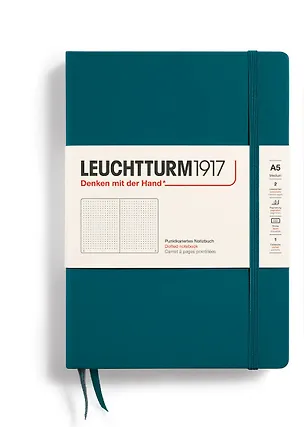 Записная книжка Leuchtturm A5 в точку, цвета океана, в твердой обложке станет верным помощником в делах и творческих начинаниях. Удобный размер (14,5х21см) делает этот блокнот Лехтурм вместительным, но при этом достаточно компактным и легким, чтобы вам было удобно носить его с собой.