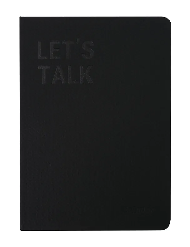 Элегантная записная книга для ваших мыслей. Тканевая обложка приятна на ощупь и выглядит по-настоящему респектабельно. Линейная разметка страниц помогает вести аккуратные записи, а формат А5 удобен как для фиксации рабочих моментов, так и для личных заметок. Строгий чёрный цвет и лаконичный дизайн делают эту книгу идеальным спутником. Особый акцент придаёт надпись на обложке Let's talk, что значит «давай повогорим» с английского языка.