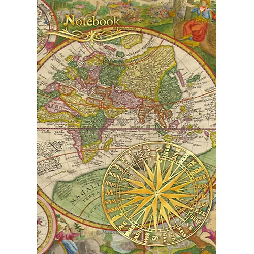 Книга для записей А4 200 листов в клетку "Офисный стиль. Карта мира" твердый переплет, матовая ламинация, тиснение фольгой, белый блок, ляссе, Listoff