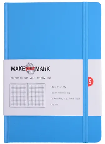 Книга для записей А5 100л кл. "Make your mark" голуб.тв.переплет, тонир.блок, резинка, ляссе, инд.уп.