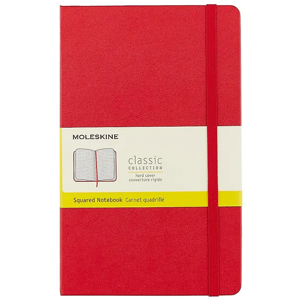 Книга для записей А5 120л кл. "Classic Large" красная, жесткая обложка, резинка, Moleskine