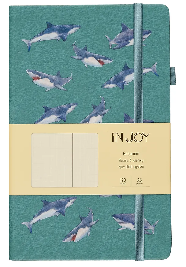 Книга для записей А5 120л кл. "IN JOY. №4" 7БЦ, иск.кожа, трафаретн.печать, тонир.форзац, скругл.углы, ляссе, резинка, петля д/ручки, карман на задн.форзаце