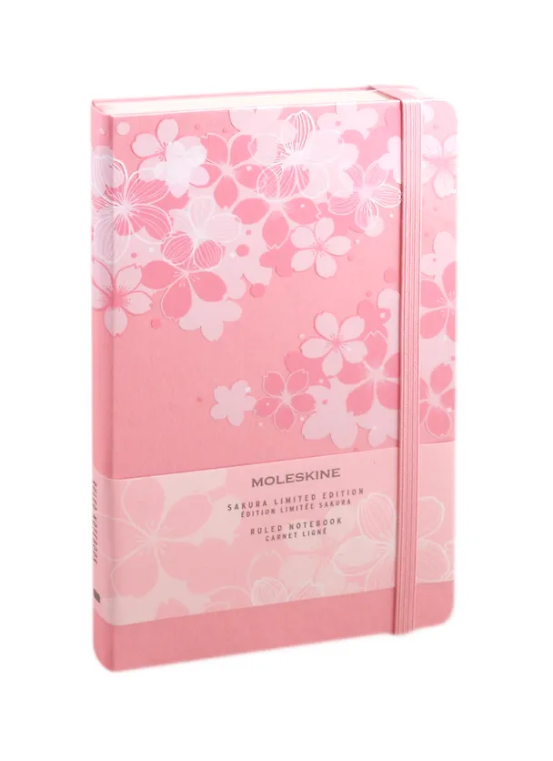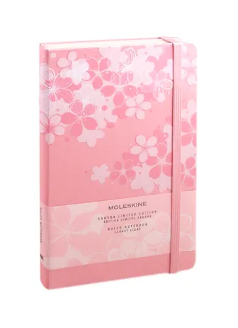 Книга для записей А5 120л лин. "SAKURA LARGE" обложка текстиль, розовый, резинка, ляссе, Moleskine