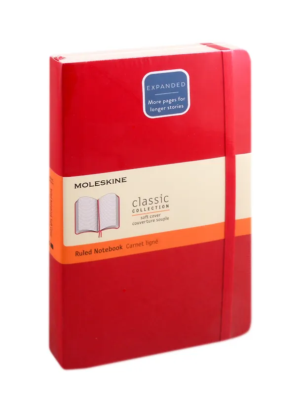 Книга для записей А5 200л лин. "CLASSIC SOFT EXPANDED Large" мягк.обл., красный, резинка, 2 ляссе, Moleskine