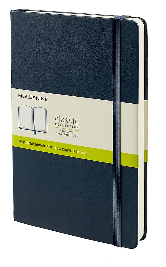 В дизайне увеличенной записной книжки Classic использованы знаменитые фирменные элементы Moleskine: закругленные углы, расширяемый внутренний кармашек для отдельных записок, сделанных на ходу, эластичная застежка подходящего цвета, чтобы ваши идеи пребывали в сохранности, а также специальная надпись «In case of loss», где можно указать свои контактные данные и награду для того, кто найдет ваши драгоценные записи.