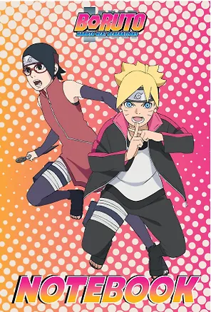 Яркий блокнот для записей с любимыми героями манги "Наруто" на обложке.