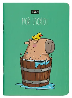 По сути это линованая тетрадь для записей. Красивая мягкая обложка с креативным дизайном: изображением капибары.