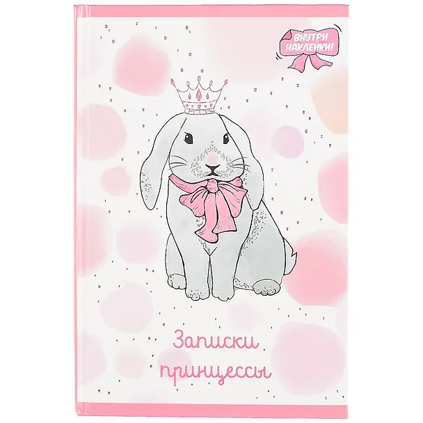 Книга для записей А5 48л лин. "Записки принцессы. МИЛЫЙ КРОЛИК" 3л наклейки, тв.переплёт, гологр.фольга