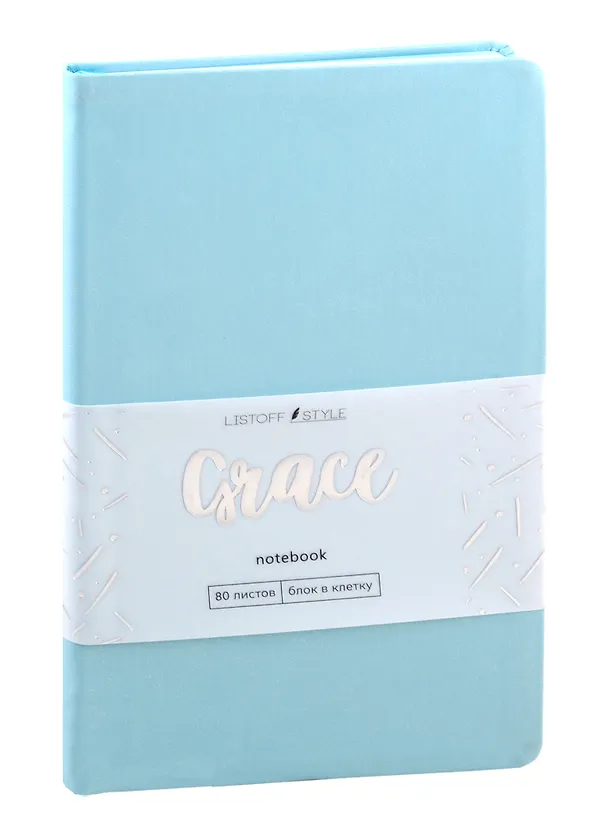 Книга для записей А5- 80л кл. "Graсe" небесно-голубой, иск.кожа, ляссе, инд.уп.