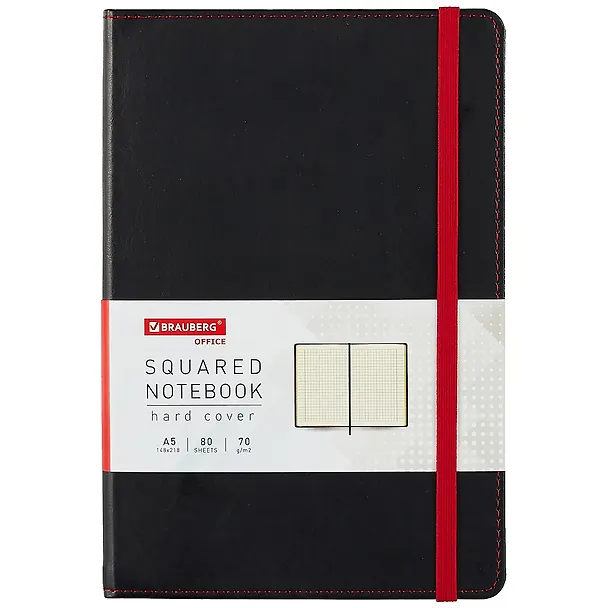 Книга для записей А5 80л кл. "Office" иск.кожа, черн., резинка