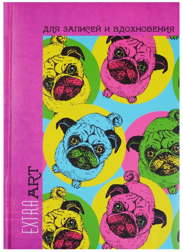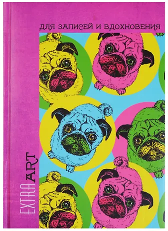 Книга для записей А5- 96 листов 132*186 мм "Extra Art. Разноцветные мопсы" (творческая) 7БЦ, с поролоном, матовая ламинация, Listoff