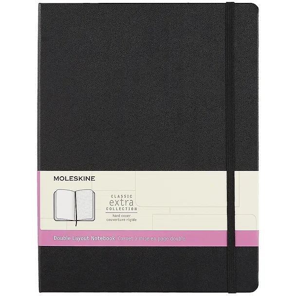 Книга для записей А5+ 96л лин./нелин. "CLASSIC DOUBLE Xlarge" тв.обл., черный, ляссе, инд.уп., Moleskine