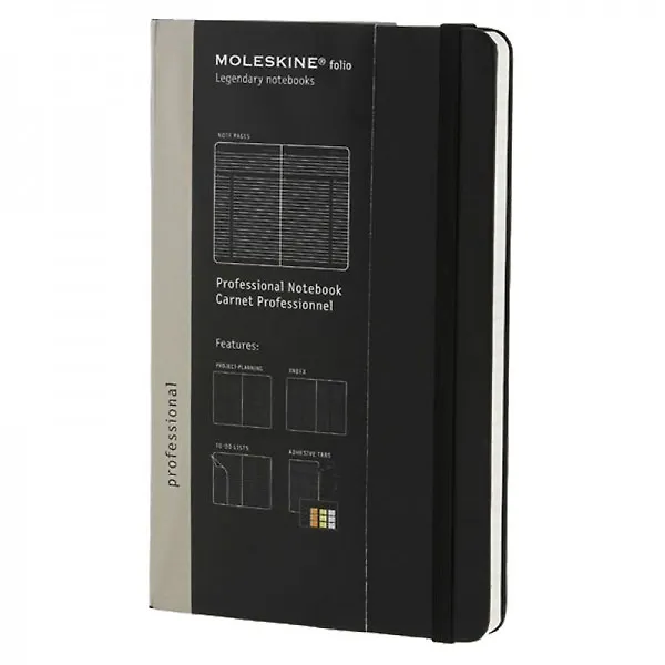 Записная книжка А5 96л линейка "Professional" черная, жесткая обложка, резинка, карман, ляссе, Moleskine
