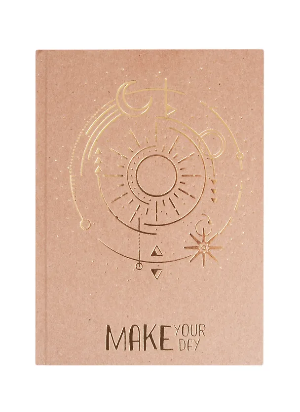 Книга для записей А5- 96л "MakeYourDay" 7Б, крафт, тисение золот.фольгой, тонир.дизайнерск.блок