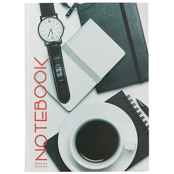 Обложку этой книги для записей украшают вещи, без которых не обойтись деловому человеку – часы, записные книжки, визитница, ручка и чашка бодрящего кофе. волшебной принт обязательно настроит вас на рабочий лад.