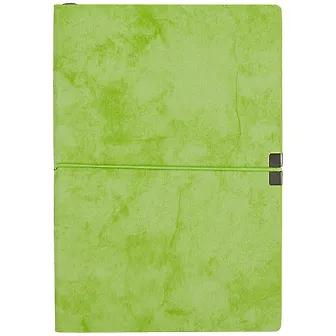 Книга для записей А5 96л "ДЖИНС ДЕЛАВЭ ЗЕЛЕНЫЙ" кожзам, мягк.переплёт, фиолет.офсет, блинт.тиснение, горизонт.резинка, ляссе, инд.уп.