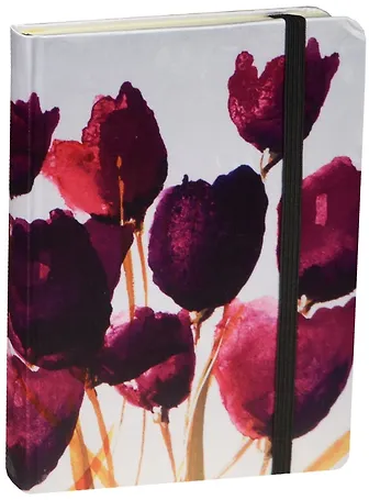 Записная книжка В6(А5), 96 листов, "Тюльпаны" на резинке, шелк, с внутренним карманом.