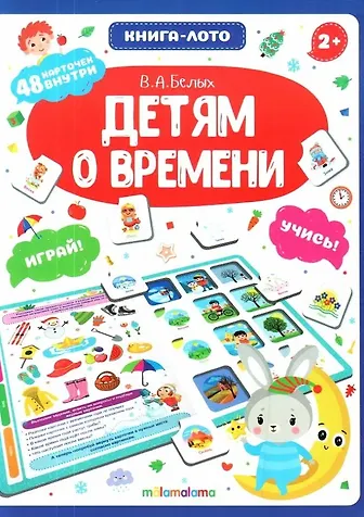 Книга-лото «Детям о времени» — это замечательная возможность для ребёнка в увлекательной форме освоить понятие времени, узнать о временах года и днях недели. На 8-ми страницах малыш найдёт 48 карточек, которые помогут ему выполнить множество интересных развивающих заданий, составленных по методике Виктории Белых — педагога-психолога с 25-летним стажем работы с детьми.