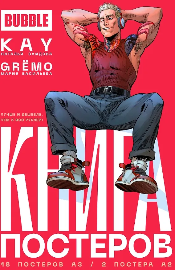 Это самый первый альбом постеров от Bubble и они сразу взяли высокую планку, выбрав, на мой взгляд самого лучшего своего художника (я просто фанатка творчества Kay)) А еще цвет от Марии Васильевой! Игорь и Ирина на танцполе, Сергей и Олег за просмотром фильма, Мердок Макалистер и Кирк О'Райли в пабе, Серый Волк в медитации, Игорь Угорь на дне, Вадим Дракон на обложке, прямо не знаешь что выбрать и это отлично!!!