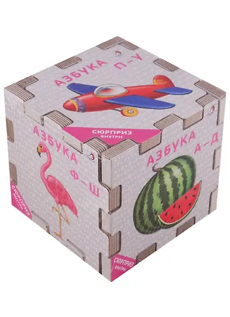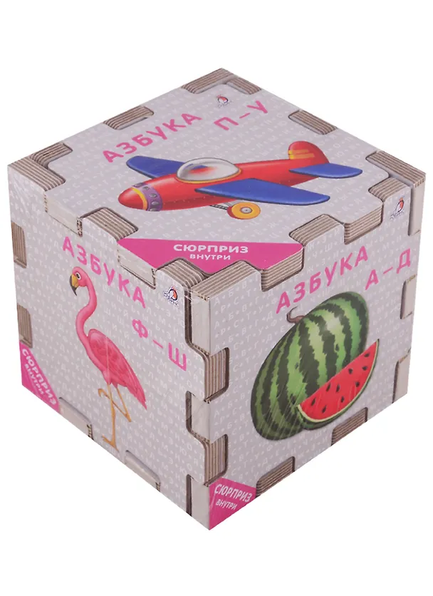 6 книжек-пазлов собираются в один большой кубик или в одну большую картинку-алфавит.