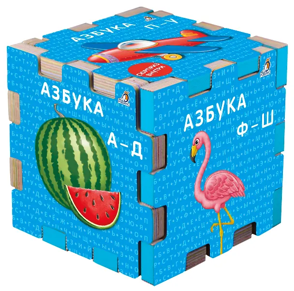- Одновременно книжки (6 книжек в кубике), игрушка и пазл.
