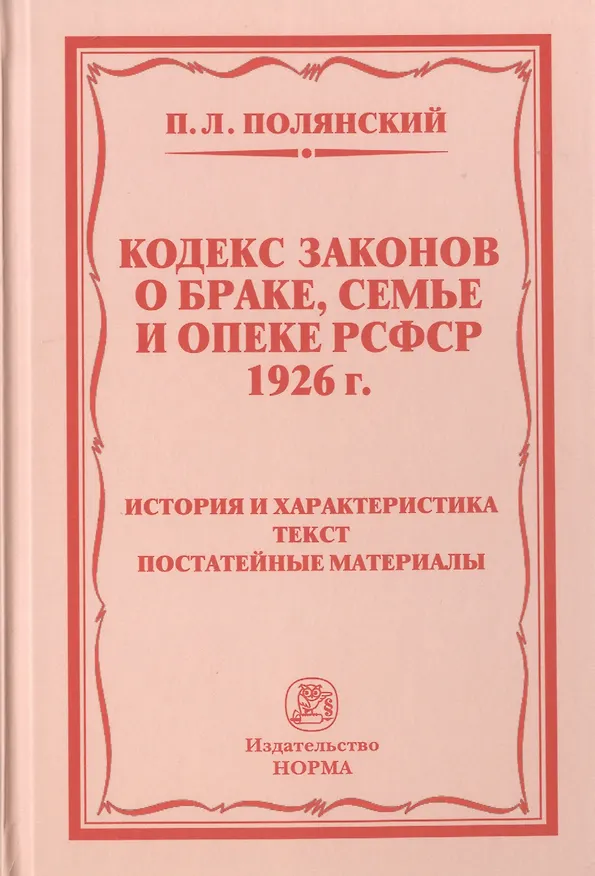 Кодекс законов о браке, семье и опеке РСФСР 1926 г. История и характеристика. Текст. Постатейные материалы