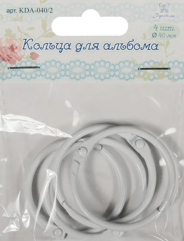 Кольца для альбома (KDA-040/2) (d=40мм) (цвет белый) (4шт.) (Рукоделие) (упаковка)