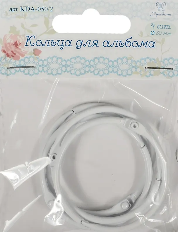 Кольца для альбома (KDA-050/2) (d=50мм) (цвет белый) (4шт.) (Рукоделие) (упаковка)