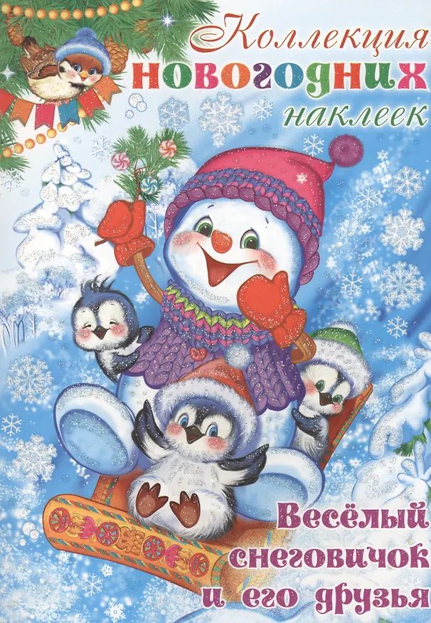 Коллекция новогодних наклеек. Веселый снеговичок и его друзья