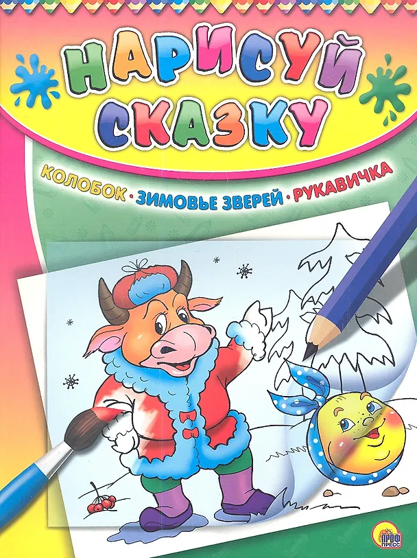 Нарисуй сказку. Колобок. Зимовье зверей. Рукавичка. Раскраска для детей
