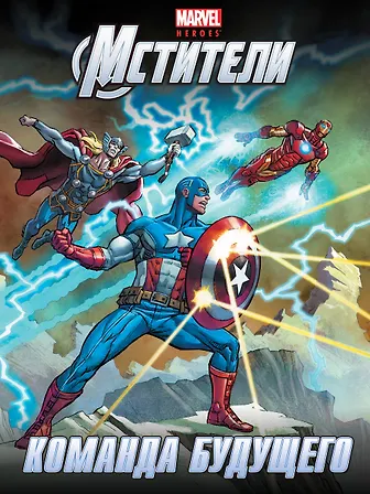 Мстители Команда будущего. У меня этих героев очень любит сын. И хотя я не сторонник таких вот полностью развлекательных книжек, пришлось купить, так как он обещал подготовиться к контрольной. В сборнике- несколько рассказов о том, как эти герои встретились и стали командой Сын с упоением читал, картинки очень яркие..