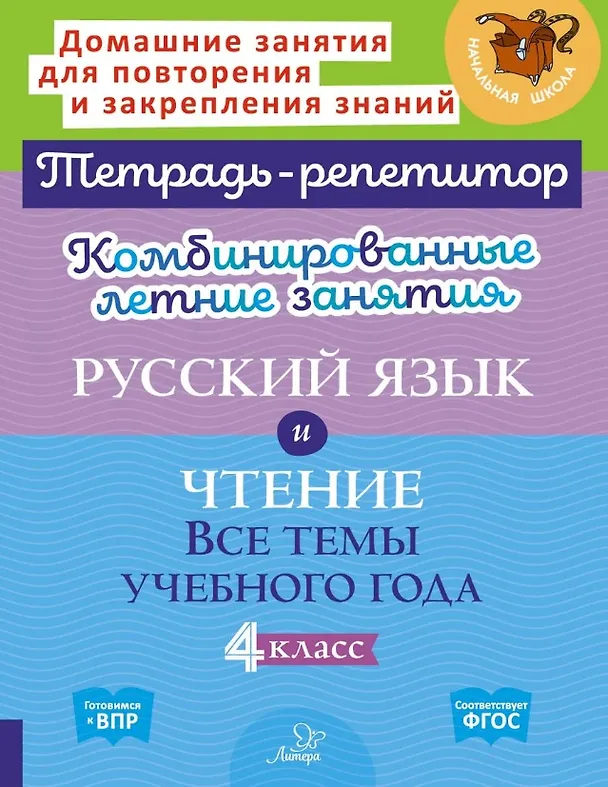 Комбинированные летние занятия. Русский язык и Чтение. Все темы учебного года. 4 класс