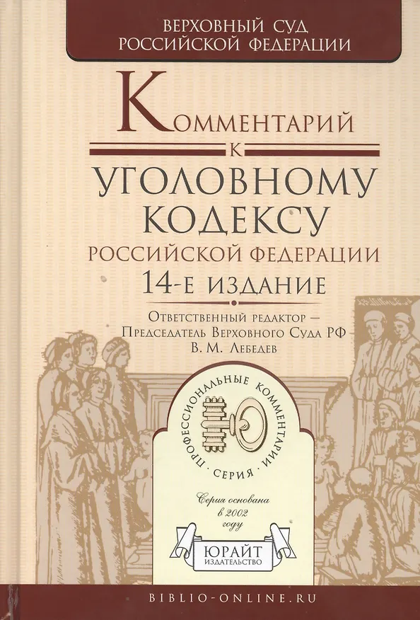 Предлагаемый постатейный комментарий к Уголовному кодексу РФ представляет собой уникальное сочетание профессиональных знаний известных российских ученых-юристов в области уголовного права и результатов практического применения Кодекса судьями Верховного Суда РФ. В издании подробно анализируется каждая норма Кодекса, особое внимание уделяется практическим аспектам применения его статей. Четырнадцатое издание Комментария (первое — 2001 г.) учитывает все изменения, произошедшие в уголовном и смежном с ним законодательстве, по состоянию на 1 августа 2013 г. Учтена судебная практика, наработанная за время действия Кодекса и отраженная в решениях Президиума, Судебной коллегии по уголовным делам и