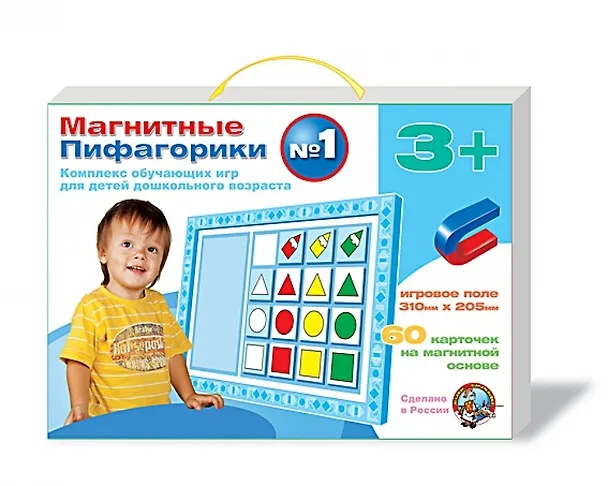 Набор магнитных карточек "Пифагорики №1" - развивающая игрушка для малышей с помощью которой ваш ребенок сможет научиться считать и логически думать. В комплект входят: магнитные карточки с изображением разных геометрических фигур и магнитное поле, на котором можно выкладывать различные фигуры в соответствии с заданием.