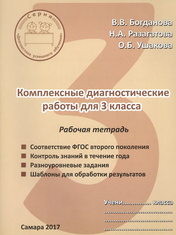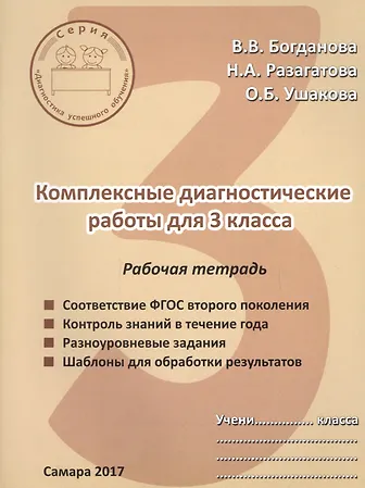 Комплект изданий для третьего класса серии "Диагностика успешного обучения" содержит проверочные работы, которые помогут определить уровень сформированное как предметных умений, так универсальных учебных действий учащихся, что очень важно при определении направлений дальнейшей работы с третьеклассником. В комплект входят рабочая тетрадь для учащихся, которая содержит материал для проведения входной, промежуточной и итоговой комплексных диагностических работ, а также методическое пособие для учителей и родителей, в котором содержатся инструкции к проведению контрольных, их проверке и указания по обработке полученных результатов. Предлагаемые издания соответствуют требованиям Федерального госу
