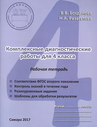 Комплект изданий для четвертого класса серии "Диагностика успешного обучения" содержит проверочные работы, которые помогут определить уровень сформированности как предметных умений, так универсальных учебных действий учащихся, что очень важно при определении направлений дальнейшей работы с четвероклассником. В комплект входят рабочая тетрадь для учащихся, которая содержит материал для проведения входной, промежуточной и итоговой комплексных диагностических работ, а также методическое пособие для учителей и родителей, в котором содержатся инструкции к проведению контрольных, их проверке и указания по обработке полученных результатов. Предлагаемые издания соответствуют требованиям Федерального