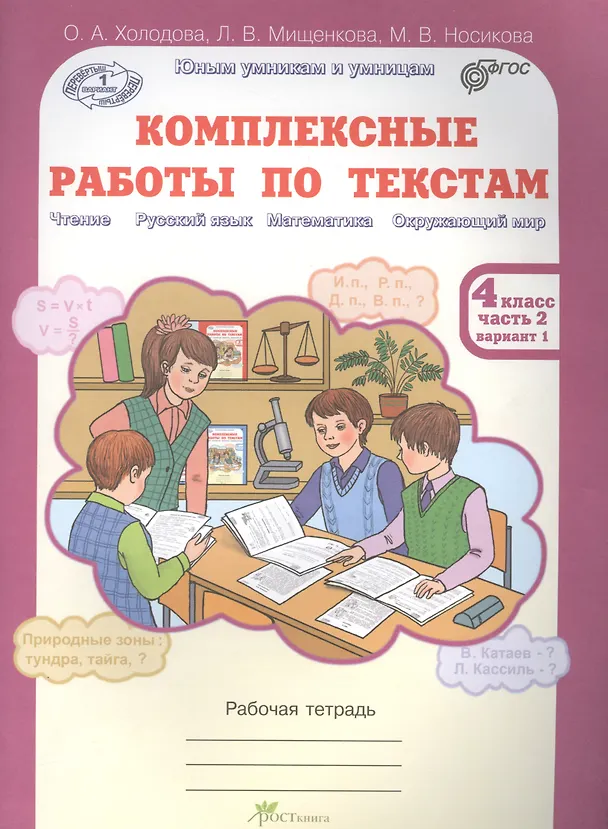 Литературное чтение. Русский язык. Математика. Окружающий мир. 4 класс. Комплексные работы по текстам. Часть 2. вариант 1