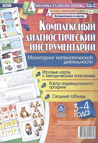 Представлен полный диагностический пакет для проведения педагогического мониторинга по результатам освоения детьми 3-4 лет образовательной области "Познавательное развитие" включает диагностический инструментарий (карту индивидуального профиля каждого дошкольника, 3 сводные диагностические карты, 48 дидактических цветных карт), позволяющей комплексно, целостно организовывать диагностическую деятельность в начале, в середине (контрольный срез) и в конце учебного года.