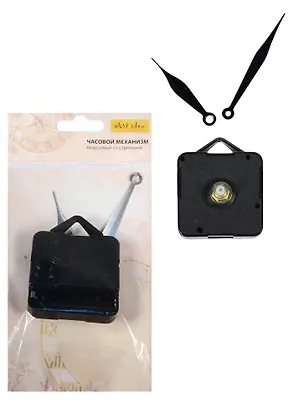 Комплект №11 Механизм часовой 16/9мм, с петлей +Стрелки 63/92мм, металлические черные