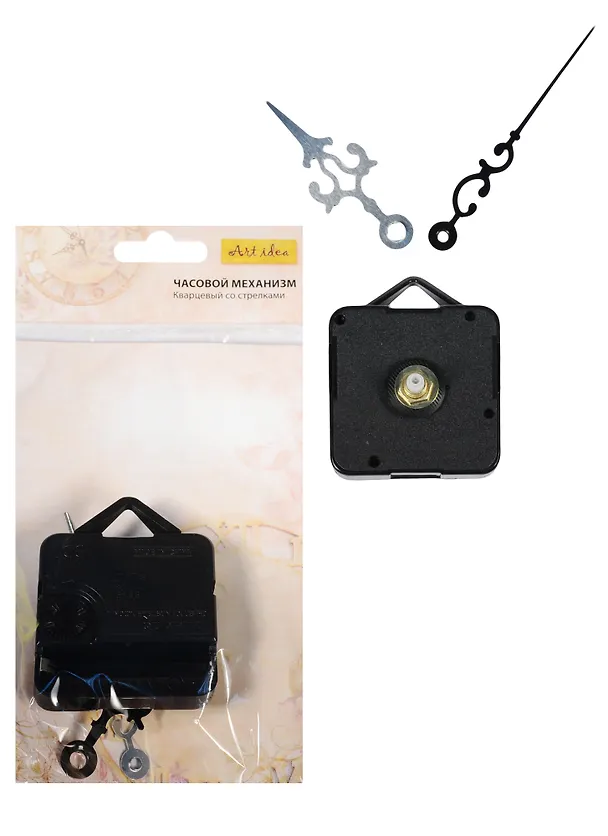Комплект №9 Механизм часовой 16/9мм, с петлей +Стрелки 57/87мм, металлические черные