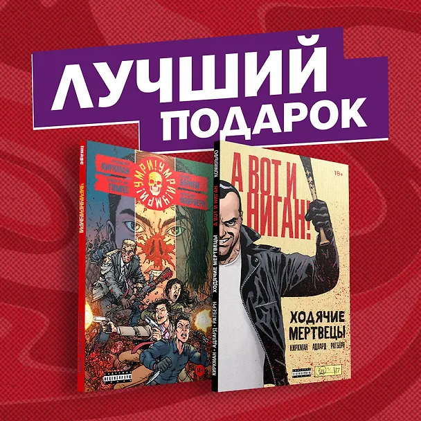 Яркий динамичный "Умри" и стильный "Ниган", выполненный в ч/б как вся серия "Ходячих мертвецов", не оставят равнодушными всех любителей жанра комиксов. Если Вам нравятся диалоги, наполненные черным юмором, а также хорошо придуманные и нарисованные экшн-сцены, то смело заказывайте этот комплект. Роберт Киркман-это заслуженный мэтр индустрии графических романов, его работы украсят любую коллекцию.