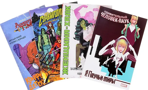 Комплект комиксов «Сорвиголова, Женщина-Халк, Гвен-Паук и Время Приключений»
