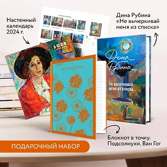 Набор: книга «Не вычеркивай меня из списка», календарь «Дина Рубина» и блокнот в точку «Подсолнухи» Ван Гог.