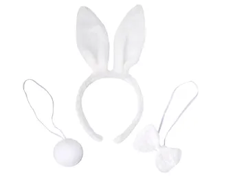 Комплект из ободка с ушками зайки, хвостика и бантика из текстиля — простой способ мгновенно создать милый образ для праздника. Мягкий ободок с забавными ушками аккуратно фиксируется на голове и не давит, пушистый хвостик и аккуратный бантик дополняют костюм и делают его законченным.