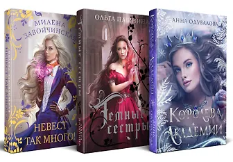 Это очень и очень красивый комплект книг трёх потрясающих авторов - Милены Завойчинской, Ольги Пашниной и Анны Одуваловой. Я прочитала пока только две книги из трёх - Невест так много и Тёмные сёстры. До Королевы академии в скором времени тоже доберусь. Сюжет Невест - как всегда лёгкий и весёлый, как всегда у Милены, а вот сюжет Сестрёр наоборот мрачный, но слог тоже очень хороший, читается книга быстро.