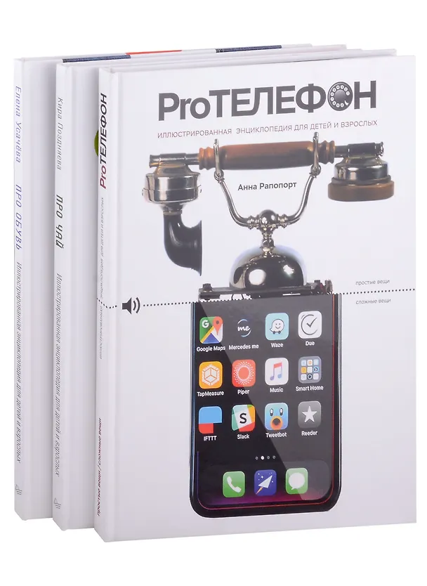 Перед вами первые в мире иллюстрированные энциклопедии, объединившие под своей обложкой все существовавшие когда-либо и существующие по сей день виды обуви, чая и телефонов. В этих изданиях по крупицам собрана достоверная информация, подготовленная совместно с научными консультантами. Книги содержат уникальные материалы и данные, которые очень сложно найти в открытом доступе.